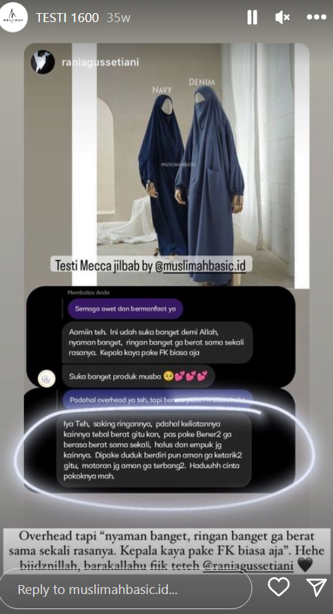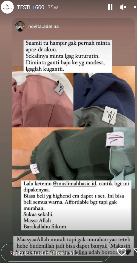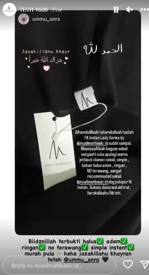 Berikut beberapa testimoni dari konsumen Muslimah Basic: